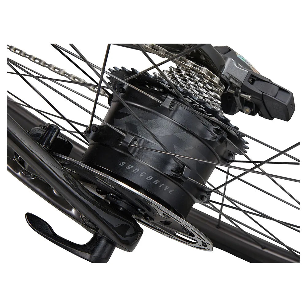 The SyncDrive Move Plus motor is integrated into the rear hub and delivers 30Nm of power (equivalent to 75Nm with a mid-drive motor) directly to the rear wheel. Weighing just 1.7kg, it’s specially tuned for the pedalling pattern of performance road riding, with minimal energy loss and more torque at higher speeds. The result is a natural feel when accelerating or maintaining steady power at speed, and no motor drag while freewheeling or coasting.